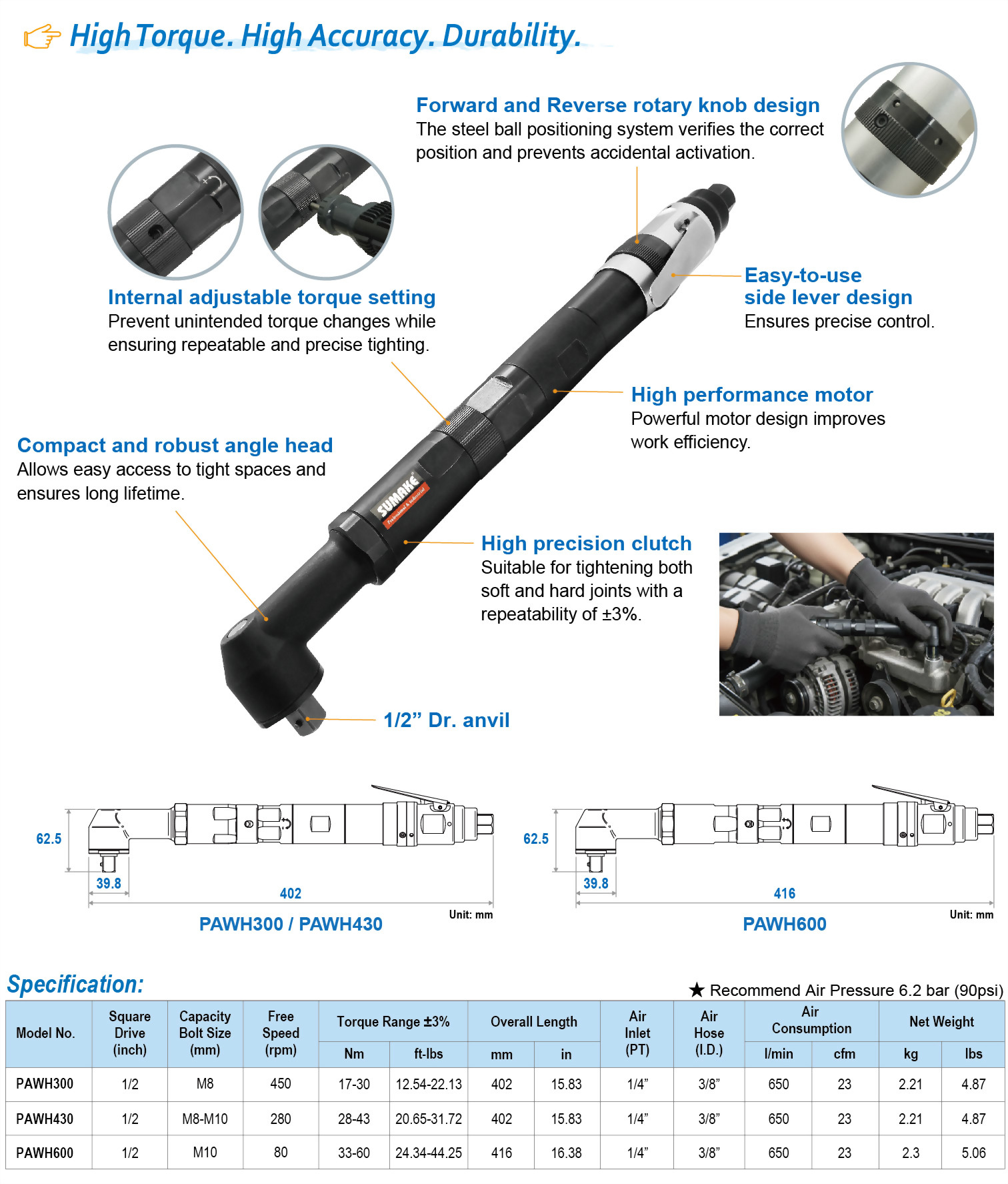 ●Ideal for industrial assembly where preset torque control and auto shut‑off deliver precise and repeatable results.
