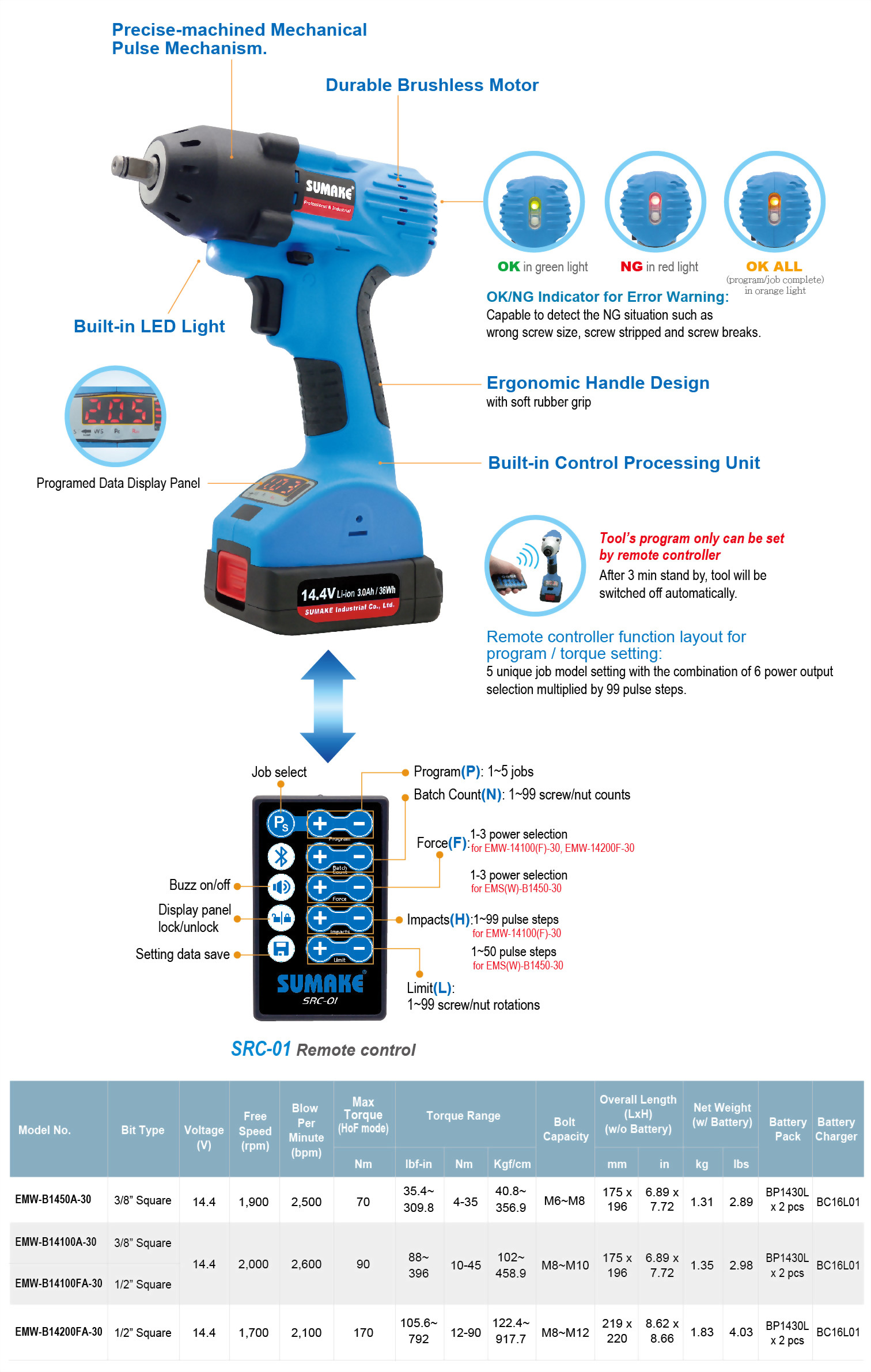 Home ProductsAssembly ToolsCordless ToolsMechanical PulseIndustrial Brushless Cordless Mechanical Pulse Wrench (Remote Control Type) Share Industrial Brushless Cordless Mechanical Pulse Wrench (Remote Control Type) Model : EMW-B14100-30,EMW-B1450-30,EMW-B1470-30,EMW-B14100F-30,EMW-B14200F-30 Q'ty : Add To Inquiry Description