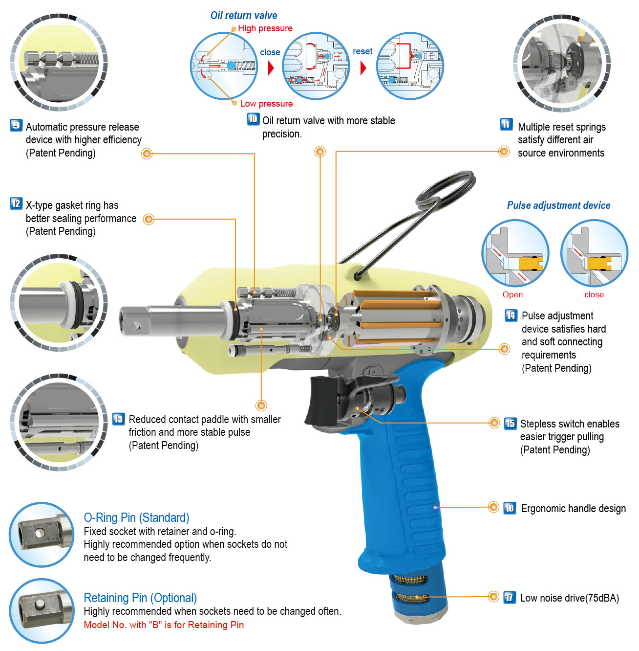 ●Technology: oil pulse special machancial structure and patent offer low noise, low vibration and small reaction force.