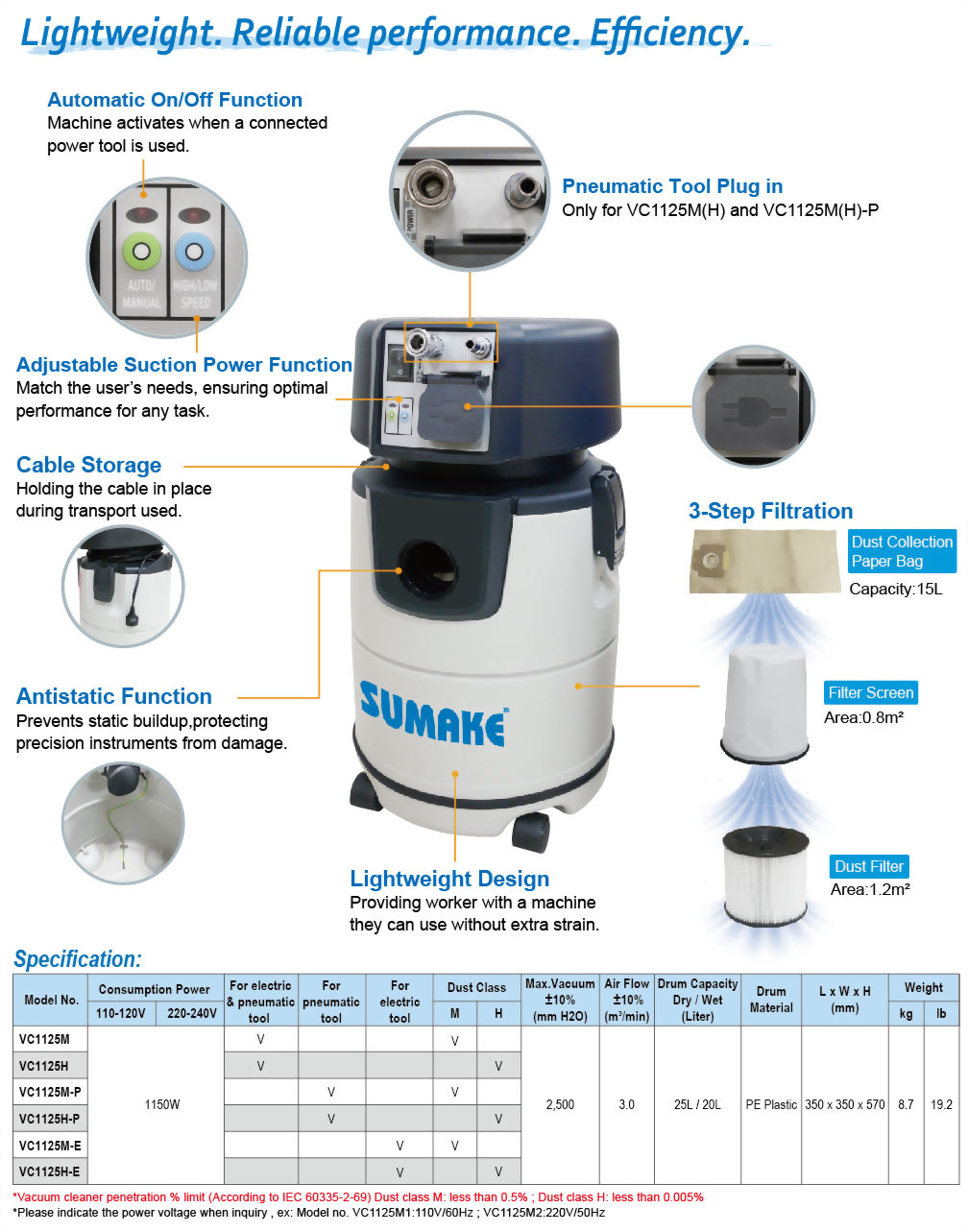 ●This powerful vacuum delivers exceptional dust collection performance when connected to air or power tools. It can also be used in both wet and dry modes for versatile, all-purpose cleanup.